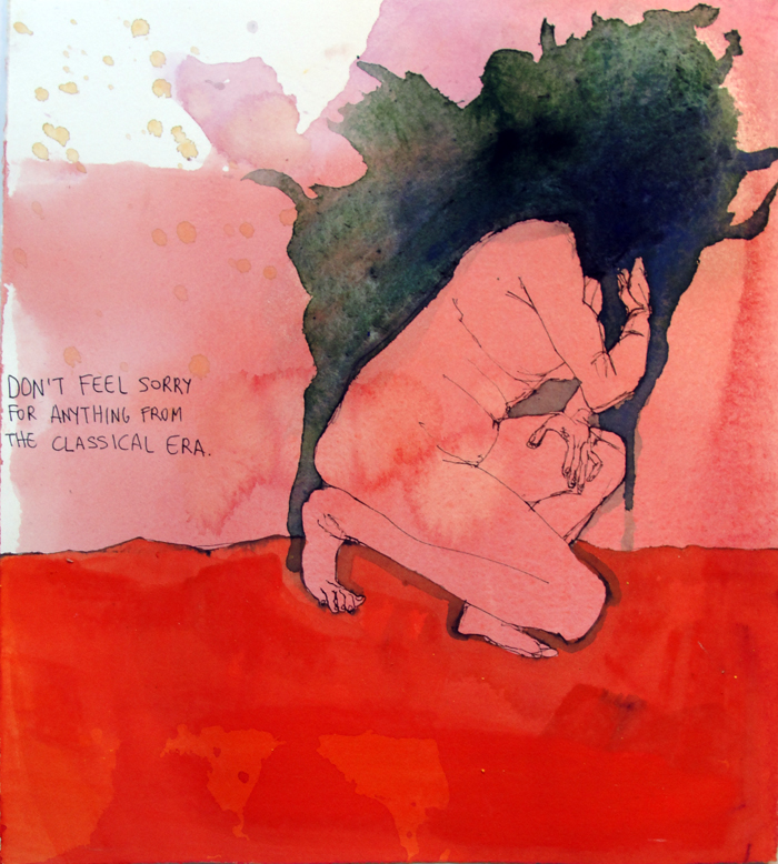 April 7 2011 pen, pigment and watercolor on paper, 10″ x 9″ Share this: Share on Facebook (Opens in new window) Facebook Email a link to a friend (Opens in new window) Email Like Loading... Related
