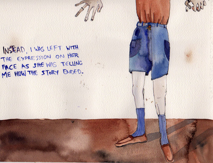 July 30 2011 pen and watercolor on paper, 8″ x 11″ Share this: Share on Facebook (Opens in new window) Facebook Email a link to a friend (Opens in new window) Email Like Loading... Related