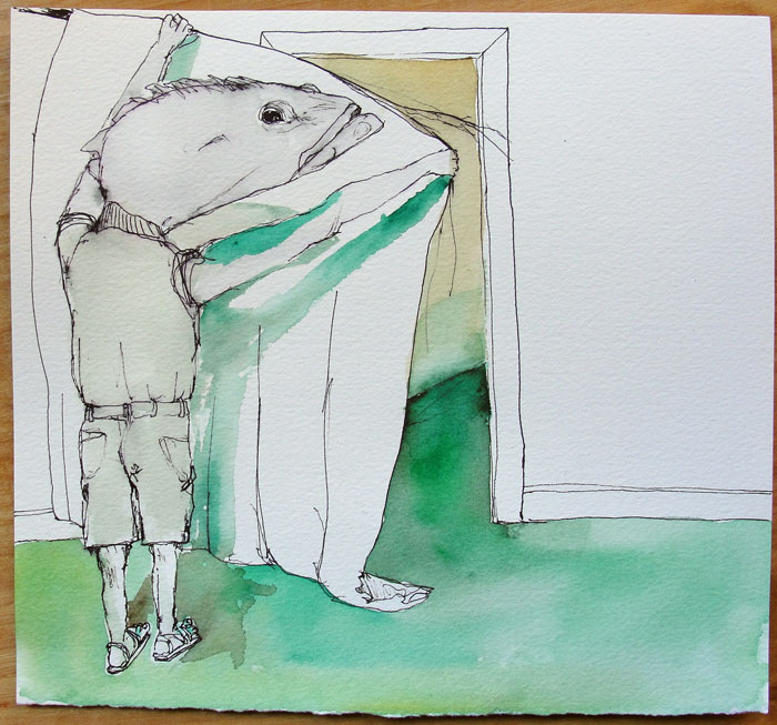 July 31 2011 pen and watercolor on paper, 8″ x 8″ Share this: Share on Facebook (Opens in new window) Facebook Email a link to a friend (Opens in new window) Email Like Loading... Related