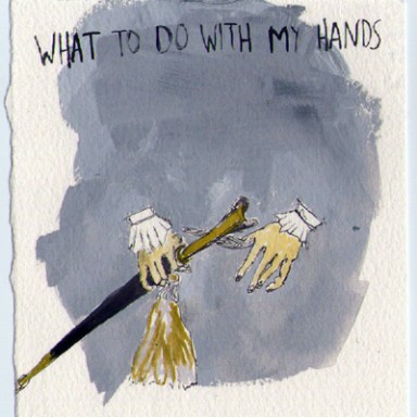 gouache and pen on paper, 12″ x 9″