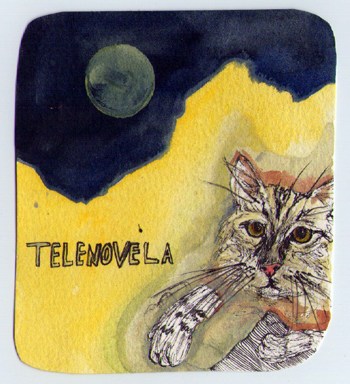 gouache and pen on paper, 4″ x 3″