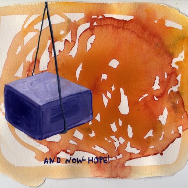 pen and watercolor on paper, 9″ x 9″