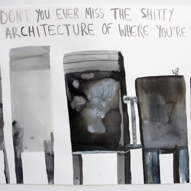 watercolor and pen on clay-coated paper, 6″ x 10″