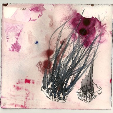 ink, watercolor and pigment on paper, 7″ x 7″