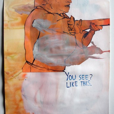 pen and acrylic on paper, 6.5 x 10 inches