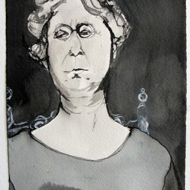 Pen and watercolor on paper, 5.5 x 4 inches